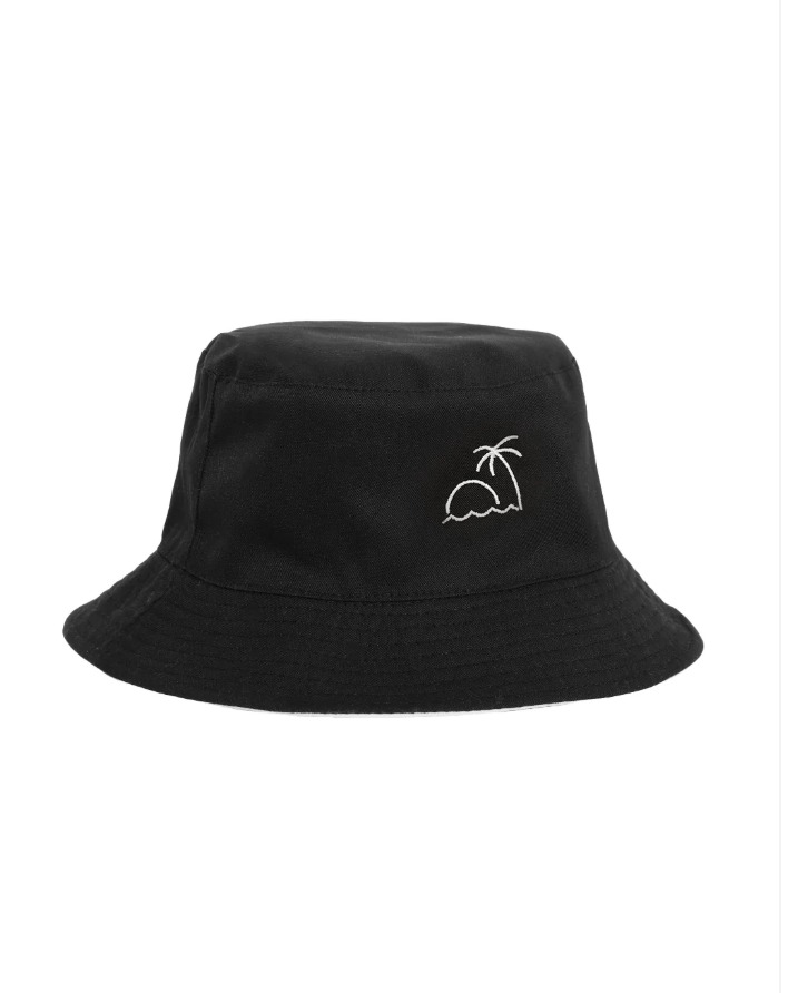 The Almost Bucket features a fully reversible design — switch between black and white embroidery to match your mood, your fit, your moment.